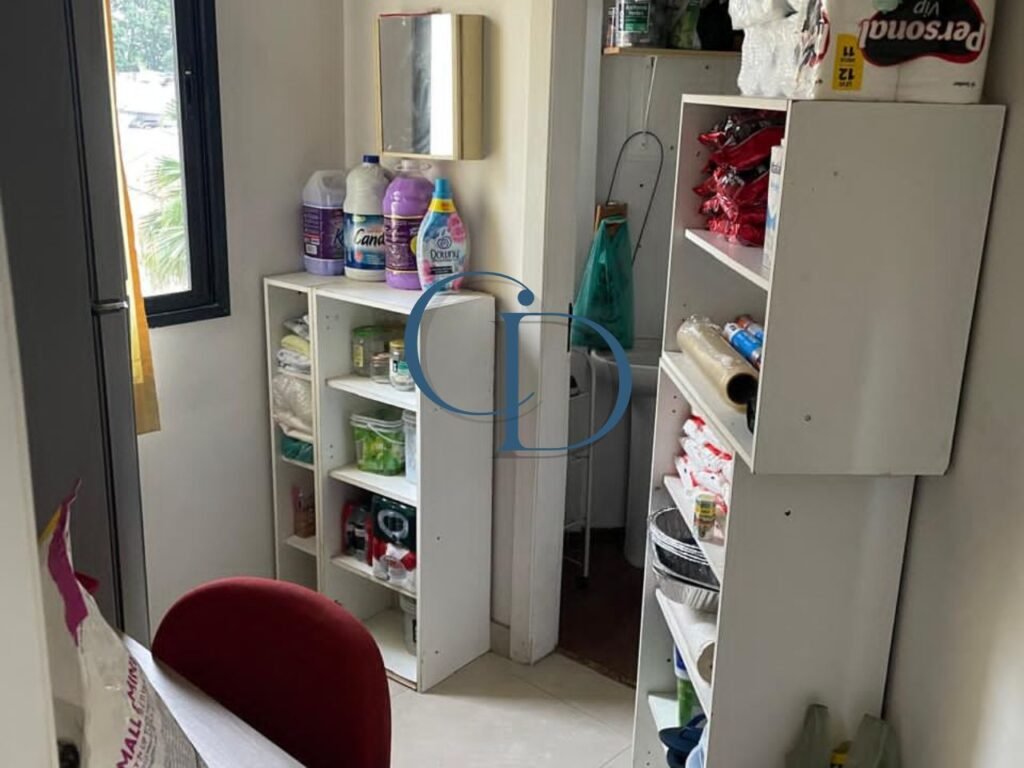 Lavanderia espaçosa, quarto e banheiro de serviço
