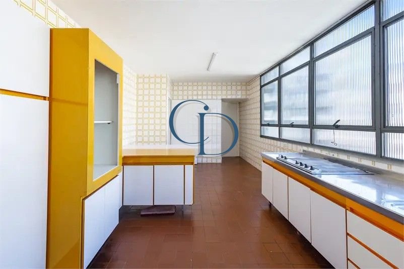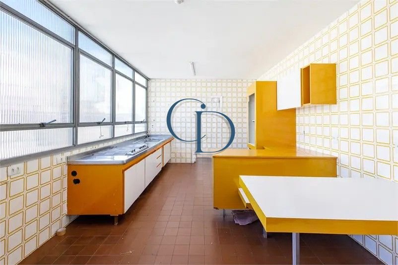 Imagine um apartamento amplo, de 170 m² de área útil, com três dormitórios (incluindo uma suíte) e duas vagas de garagem fixas. A começar pelo hall social clássico e elevadores reformados, a experiência é de chegada refinada. O living, iluminado por grandes panos de vidro, traz charme com tacos de madeira e ventilação natural. A cozinha, com layout perfeito para um projeto gourmet contemporâneo, é funcional e acolhedora.