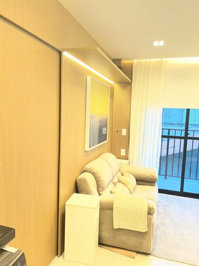 Apartamento mobiliado de 33m², localizado no 2º andar, no bairro Vila Olímpia. Conta com 1 suíte, ambientes bem distribuídos e decoração moderna, com acabamento em gesso e iluminação indireta que trazem sofisticação ao espaço.